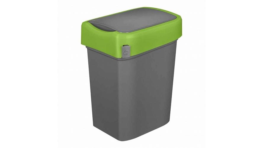 Бак изготовлен из прочного пластика. Удобная система открывания крышки позволит выбросить мусор в ведро даже с занятыми руками, просто толкнув створку вниз. Крышка может фиксироваться в открытом положении для крупного мусора. Бак имеет специальное крепление для мусорных пакетов, легко моется, блокирует неприятные запахи, препятствуя их распространению. Цветовая дифференциация ободов незаменима для организации раздельного сбора мусора дома. Бак отлично подойдет для использования в офисе и гармонично впишется в современный домашний интерьер.
