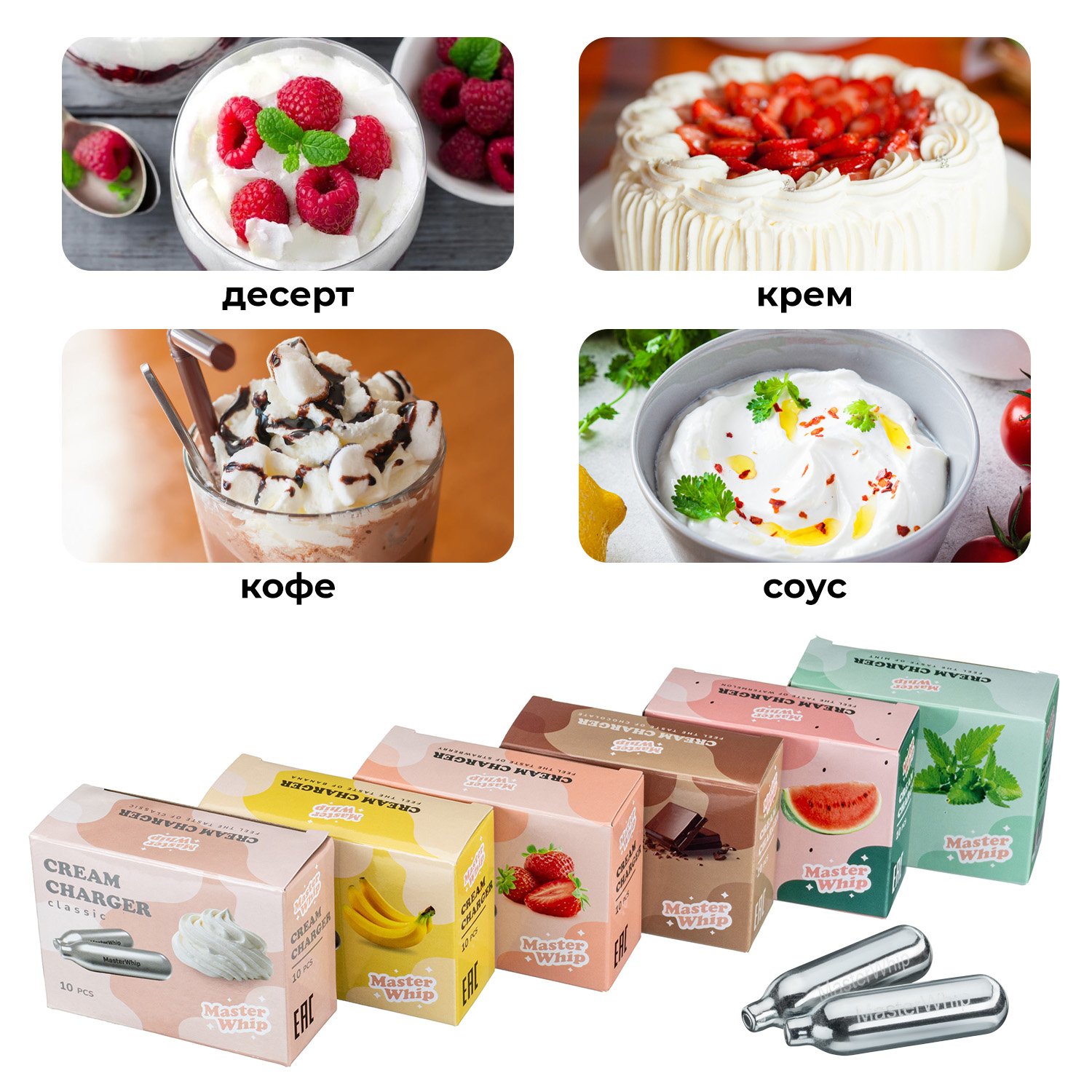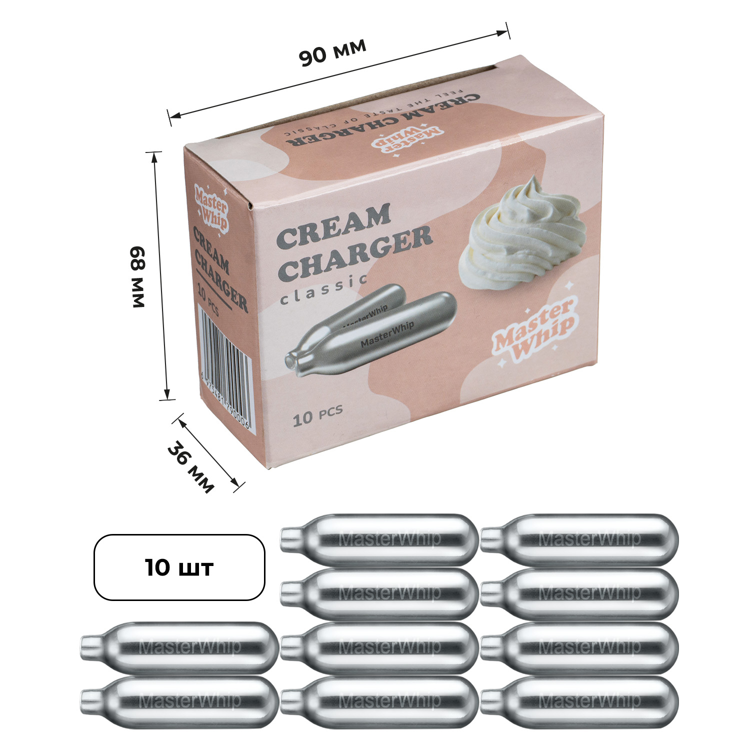 Баллончики для сифона для взбивания сливок (N2O) 10 шт/уп MasterWhip /1/36/