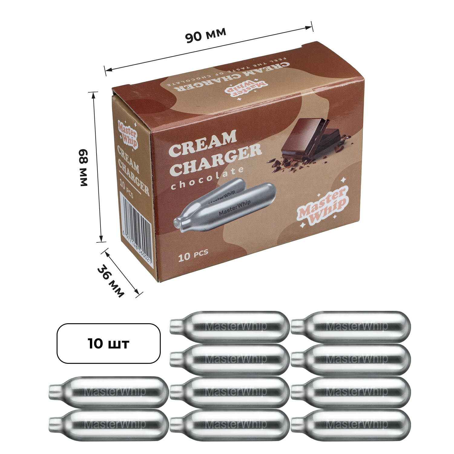 Баллончики для сифона для взбивания сливок (N2O) 10 шт/уп. вкус шоколада MasterWhip /1/36/