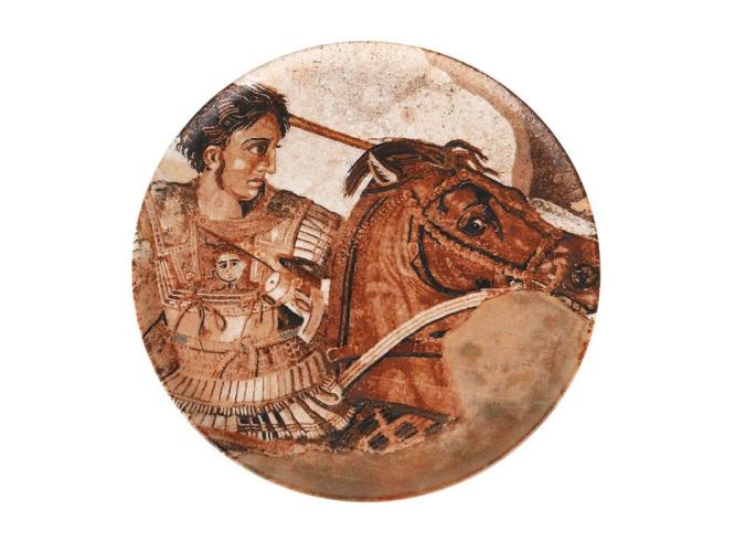 Изображение на блюде воина верхом на коне, вдохновленно историческими событиями и культурой региона Месопотамии в период Османской империи. Мозайка несет историческое значение, которое связано с военными подвигами и культурой."