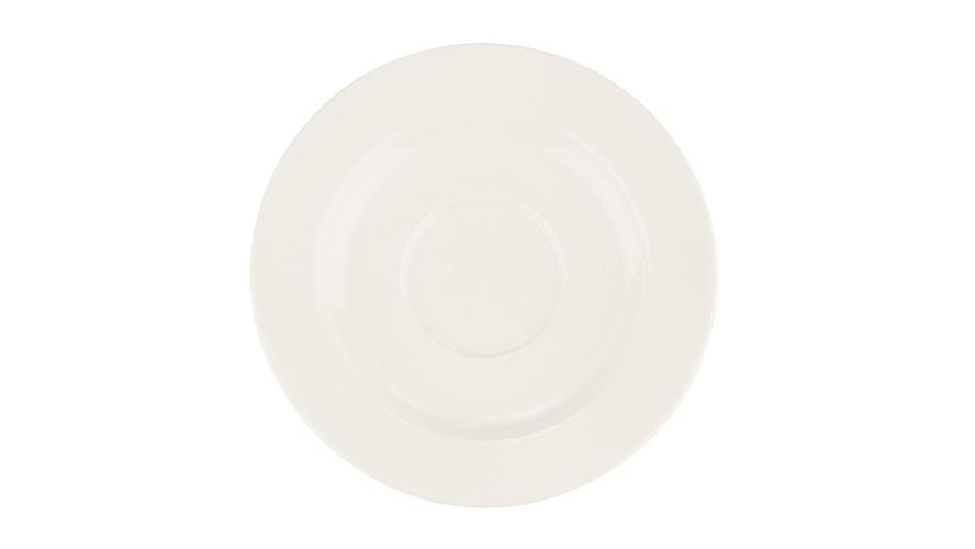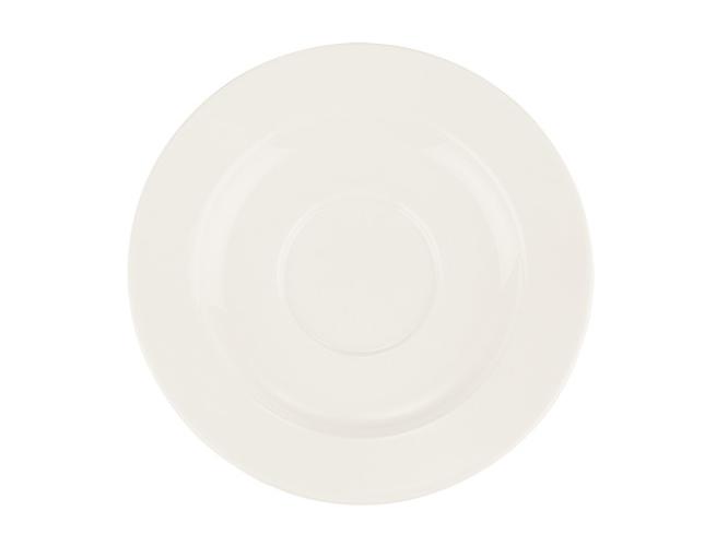 Блюдце белого цвета со сливочным оттенком.