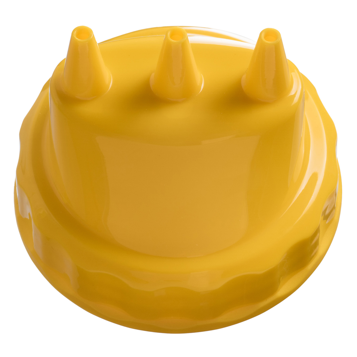 Емкость для соуса 500 мл. d=70 мм. h=200 мм. с 2 крышками 3 носика, широкая прозрачная, крышки желтые GP /1/96/