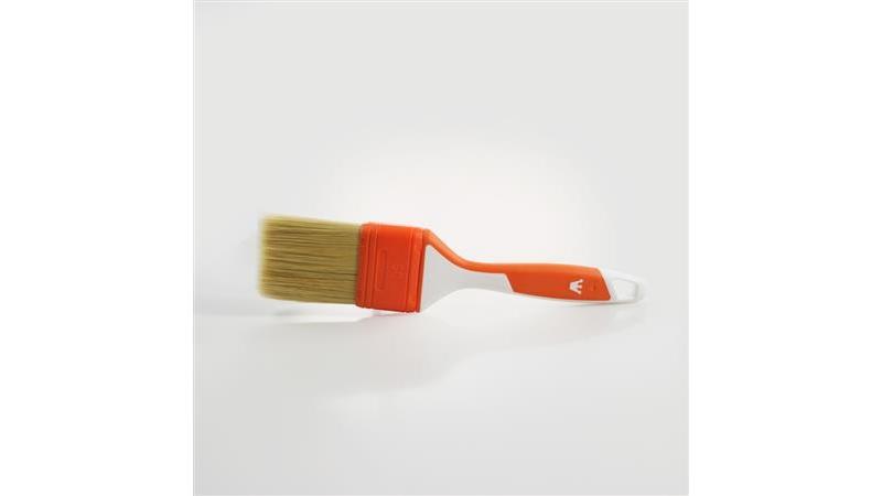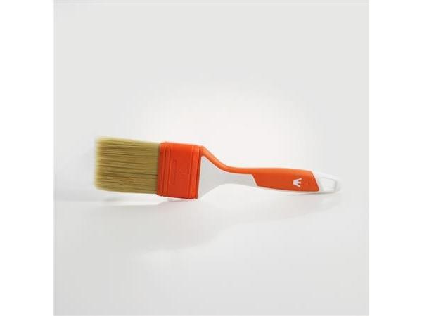 Кисть с синтетической щетиной и пластиковой ручкой.