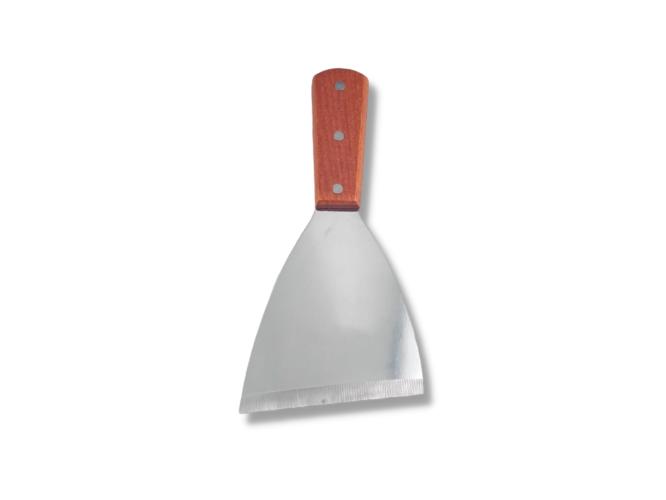 Рабочая часть металлической лопатки довольно жесткая, поэтому не подходит к посуде с антипригарным покрытием.