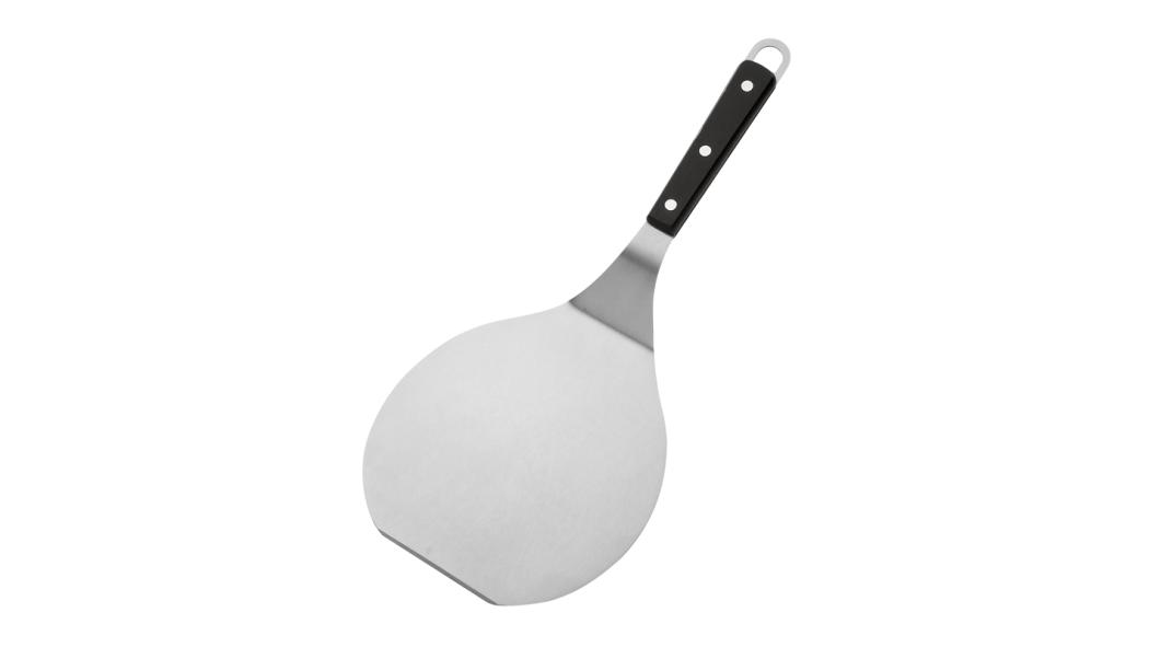 Лопатка 36 см. изогнутая раб.часть 17,5*16,5 см. нерж. широкая для котлет с пластик. ручкой, черная /1/