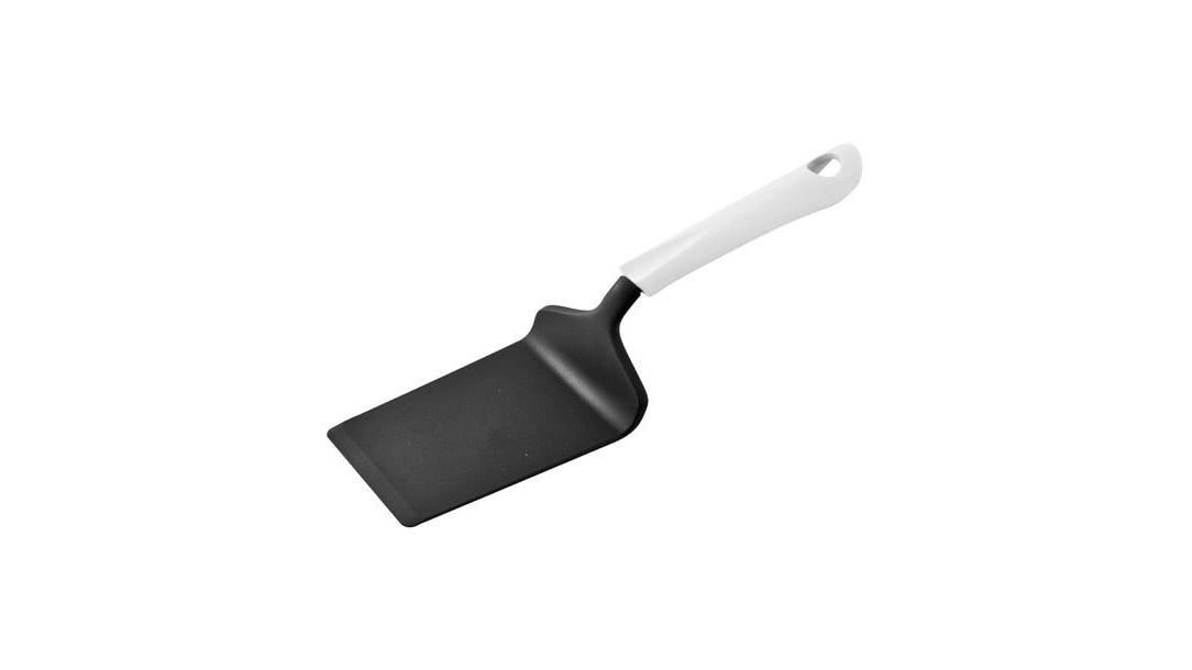 Удобная пластиковая ручка белого цвета не позволит выскользнуть лопатке из вашей руки, сделает приятным процесс приготовления любого блюда.