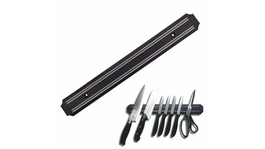 Магнитный держатель для ножей помогает грамотно распределить свободное пространство на кухонном столе.