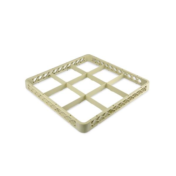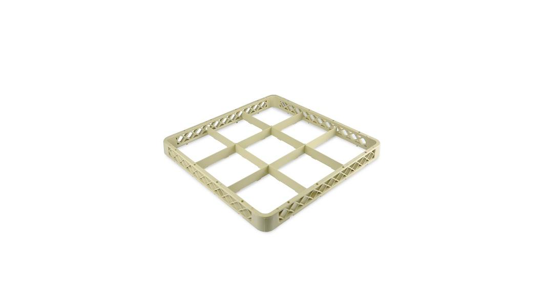 Надстройка для кассеты 9 секций, бежевая (полипропилен) используется как дополнительный элемент для установки на основную кассету с целью увеличения её высоты. Кассеты применяются для мытья одноразмерной посуды (фужеров, бокалов и др.), кухонного инвентаря, столовых приборов на профессиональной кухне предприятий общественного питания. Кассеты имеют стандартные размеры, что позволяет использовать их во всех существующих профессиональных посудомоечных машинах: фронтального, купольного и туннельного типа. Максимальный диаметр посуды для размещения в ячейках кассеты 150 мм. Помимо мойки, кассеты используются для хранения и транспортировки посуды из моечной зоны в зону раздачи, что позволяет избежать её загрязнения и значительно уменьшить бой посуды.