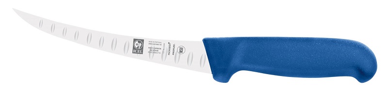 Нож обвалочный 130/260 мм. изогнутый, жесткое лезвие с бороздками, синий SAFE Icel /1/6/