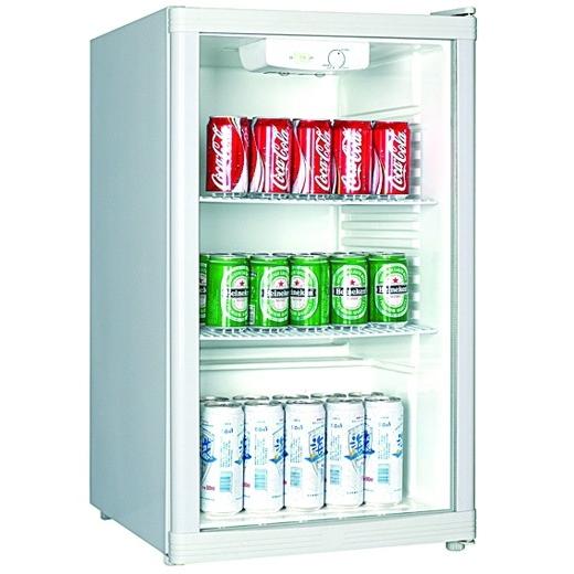Холодильный шкаф витринного типа, 1 распашная стеклянная дверца, подсветка, 2 полки-решетки, цвет белый.