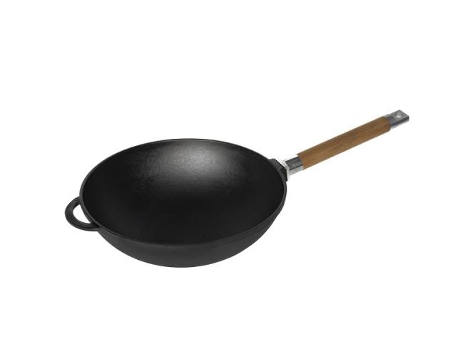 Сковорода Wok d=24 см. h=8,2 см. 2,15 л. чугун со съем дерев. ручкой /1/