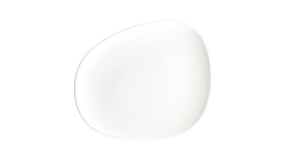 Тарелка белого цвета со сливочным оттенком.