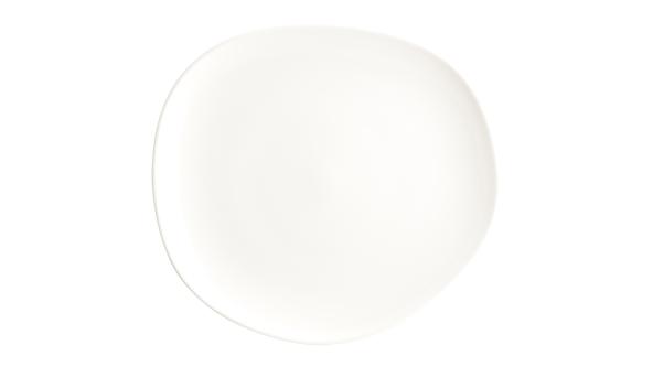 Тарелка белого цвета со сливочным оттенком.
