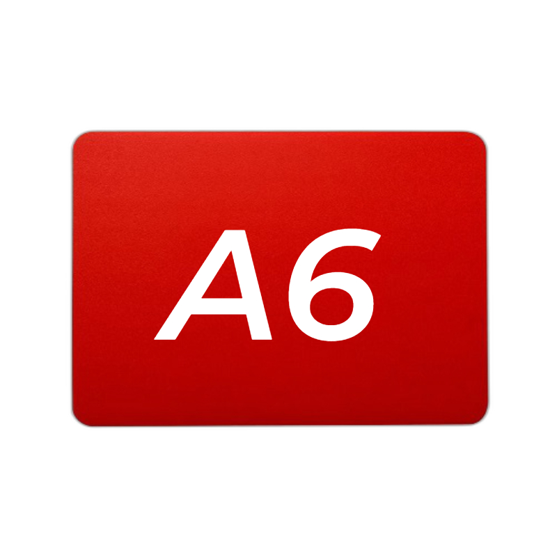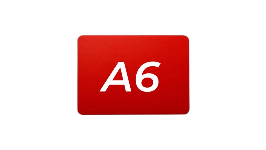 Меловой ценник с двусторонней шероховатостью красный формат А6 изготовлен из полипропилена 0.5 мм. (скругленные углы)