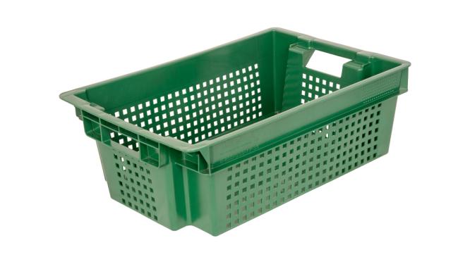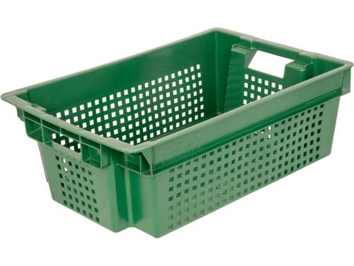 Ящик 600*400*200 мм. для овощей конусный перфорир. дно сплошное, зеленый (крышка 70254, 73263) /1/140/